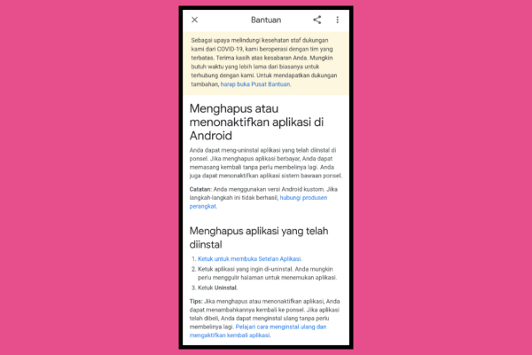 4. Kemudian pilih “Hapus atau Nonaktifkan aplikasi di android”.
