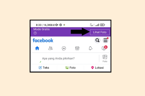 - Selanjutnya perhatikan tombol di atas yang bertulis “lihat foto”. Klik tombol tersebut untuk mengubah Facebook gratis ke mode data.